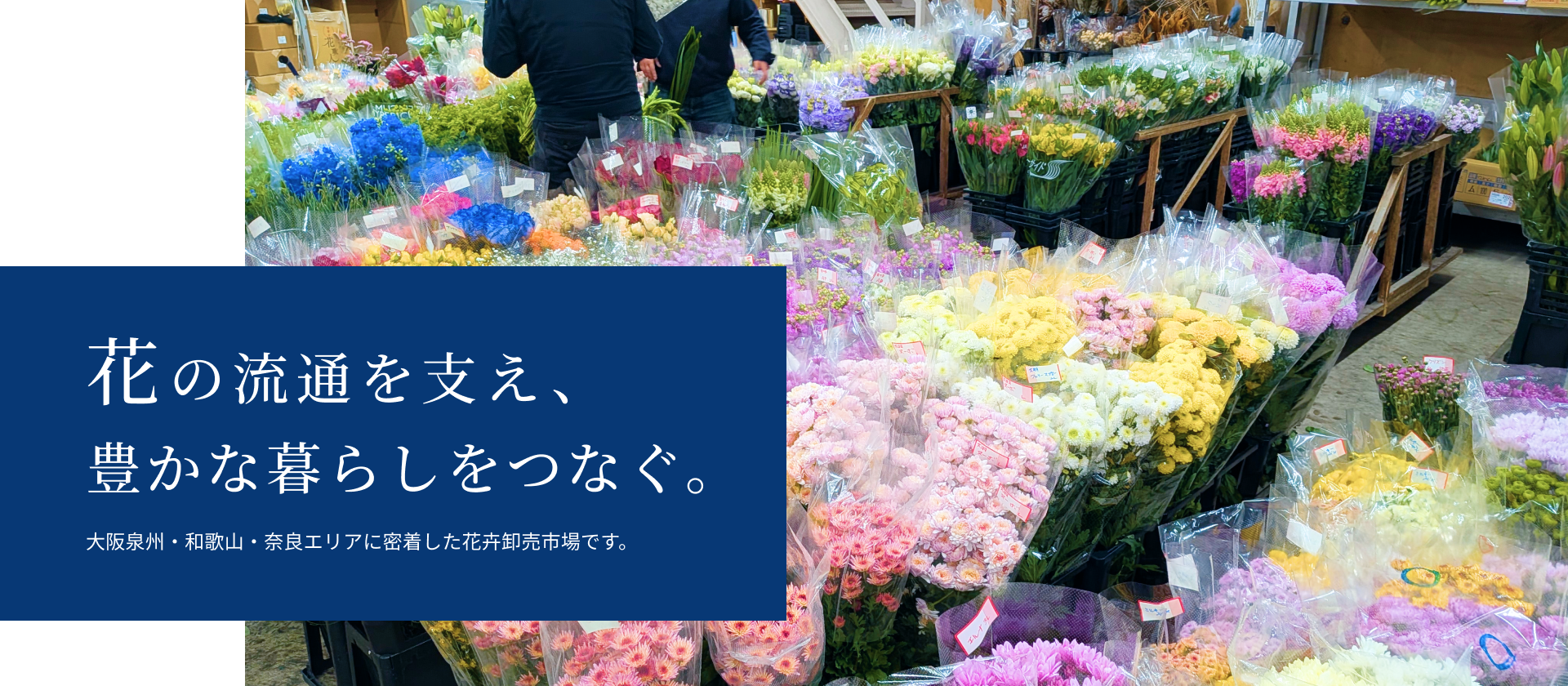 株式会社泉州花卉総合卸売市場では、生花および鉢花の卸売業を行っています。