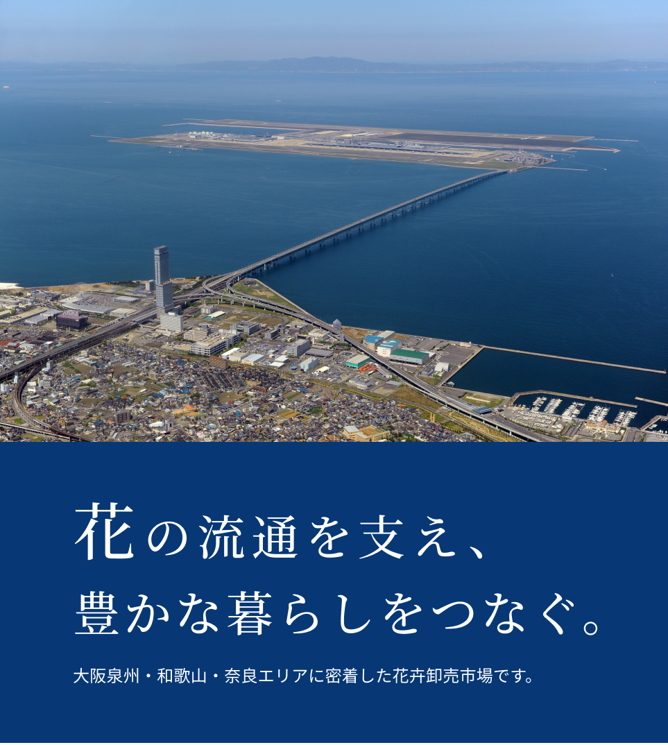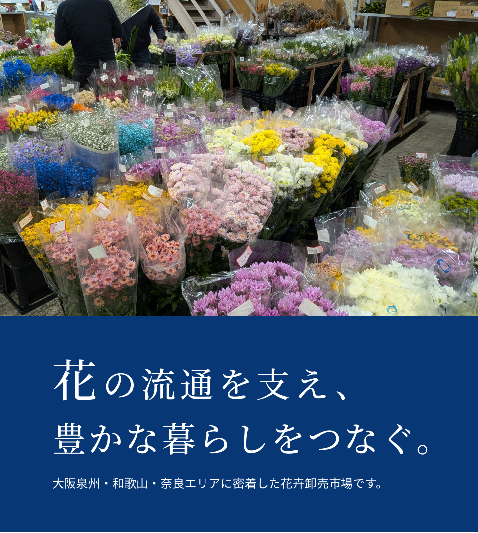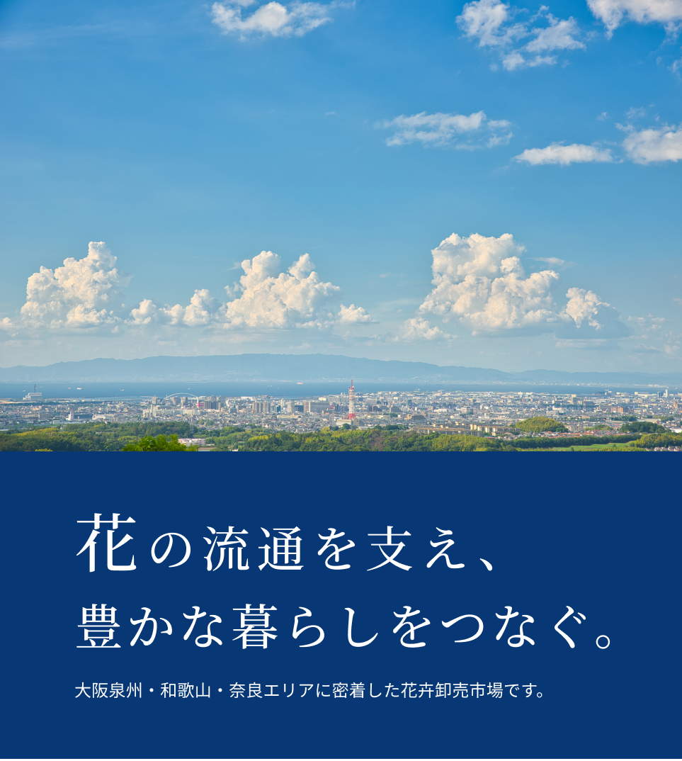長年地域で培った信頼大阪南部(泉州地域)をはじめ、和歌山、奈良、兵庫一部のエリアにおいて、長年にわたり地域の花の流通に責任を持って携わってまいりました。